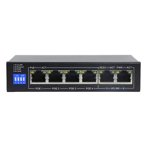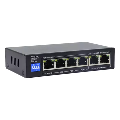 Настольный L2 коммутатор с PoE+ до 60Вт. 2 порта Uplink позволяют удобно соединенить IP видеокамеры с видеорегистратором и внешней сетью Интернет, а также подключить коммутатор в сеть с кольцевой топологией.