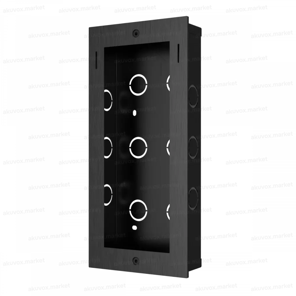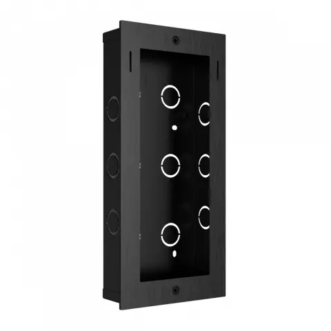 Монтажная коробка In-Wall Mounting Bracket для врезной установки IP-вызывных панелей серии X912S и X912K в бетонные, кирпичные и другие типы стен. Посадочные отверстия совпадают с крепёжными элементами на лицевой панели.