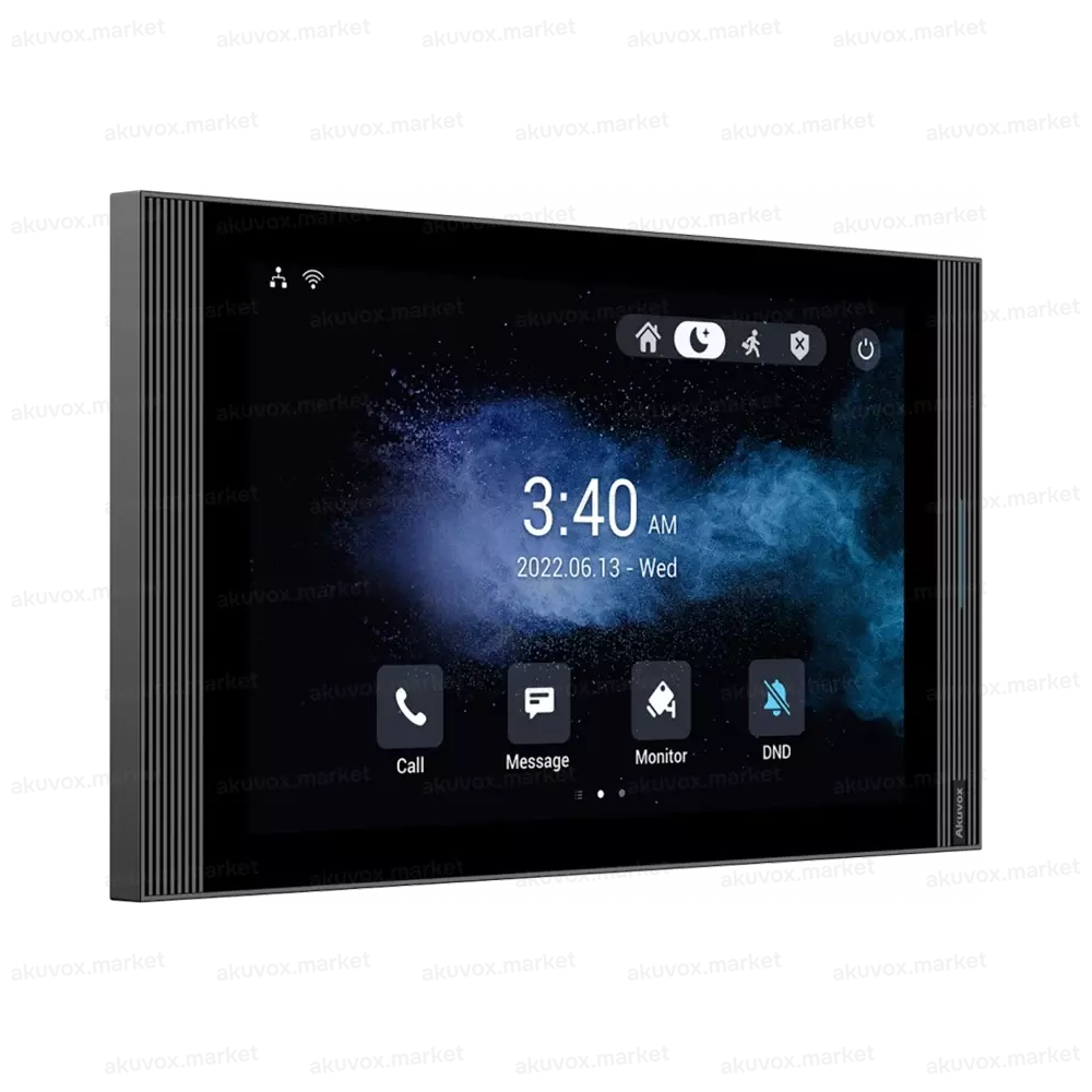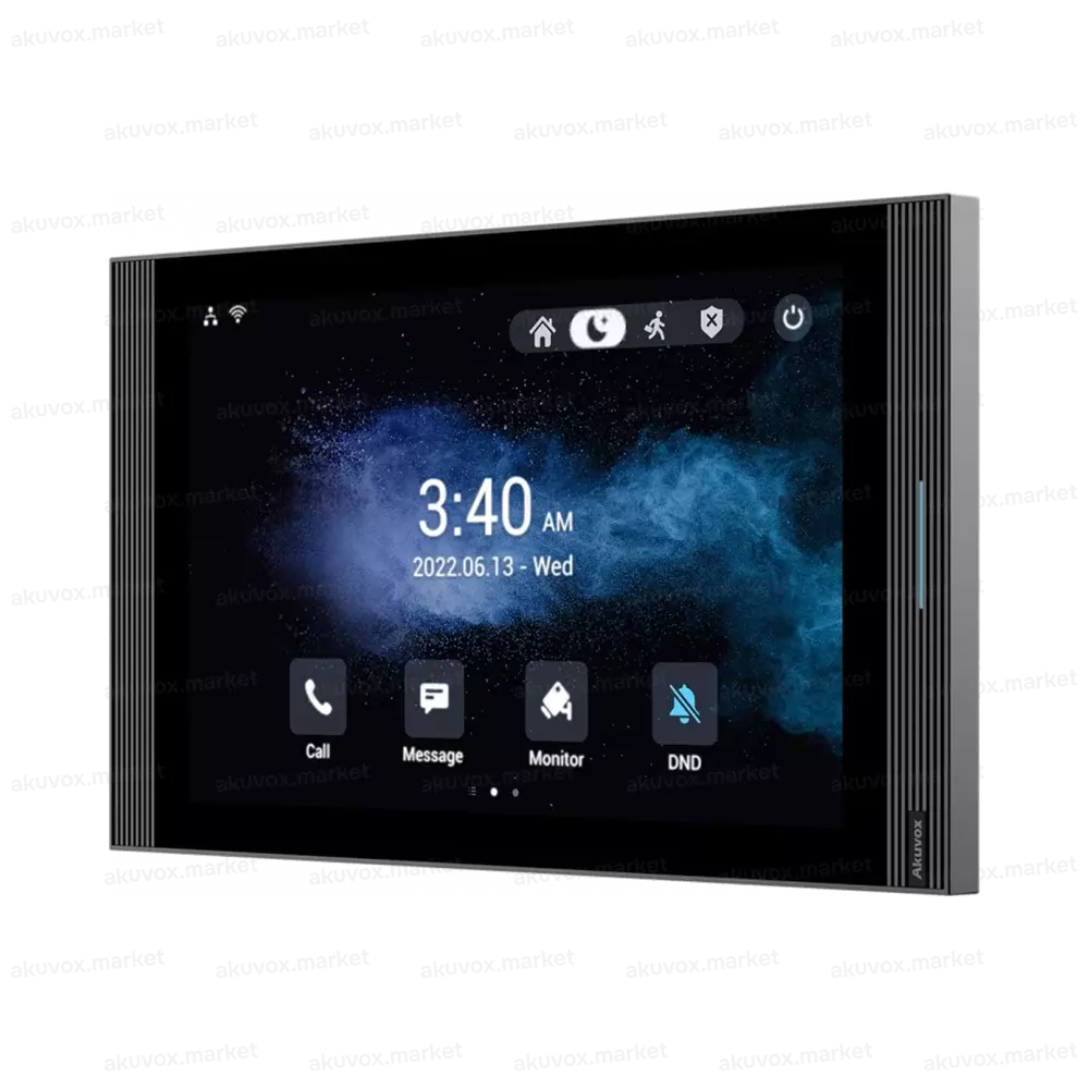 IP-видеодомофон Akuvox S567 с диагональю 10 дюймов на базе Android 12. Устройство оснащено четырьмя динамиками и одним микрофоном, что обеспечивает превосходное качество звука.