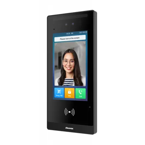 Akuvox E18C — это современная видеодомофонная панель коммерческого класса, сочетающая в себе биометрическую идентификацию по лицу, считыватель RFID карт, двухстороннюю аудио- и видеосвязь, а также поддержку различных методов аутентификации.