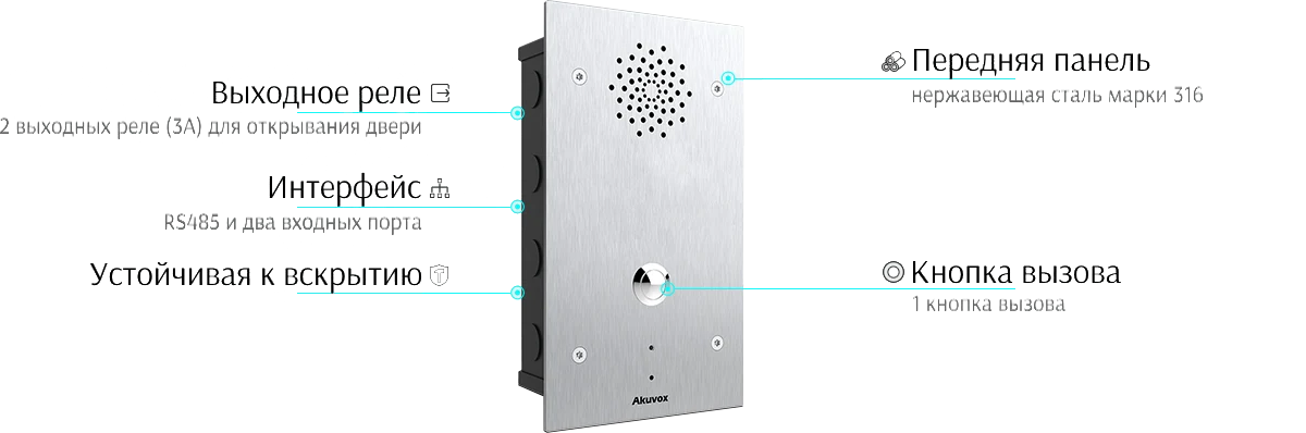 Антивандальная уличная панель Akuvox E21A из нержавеющей стали марки 316 для использования в лифтах, медицинских центрах, транспортных объектах, производственных цехах, на парковках и т.п.