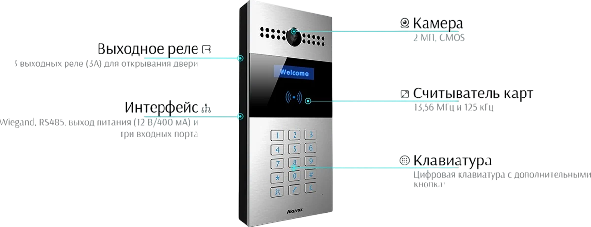 Антивандальная конструкция с RFID-считывателем и поддержка стандартов SIP/ONVIF делают R27A идеальным решением для современных жилых комплексов, бизнес-центров и офисных зданий.