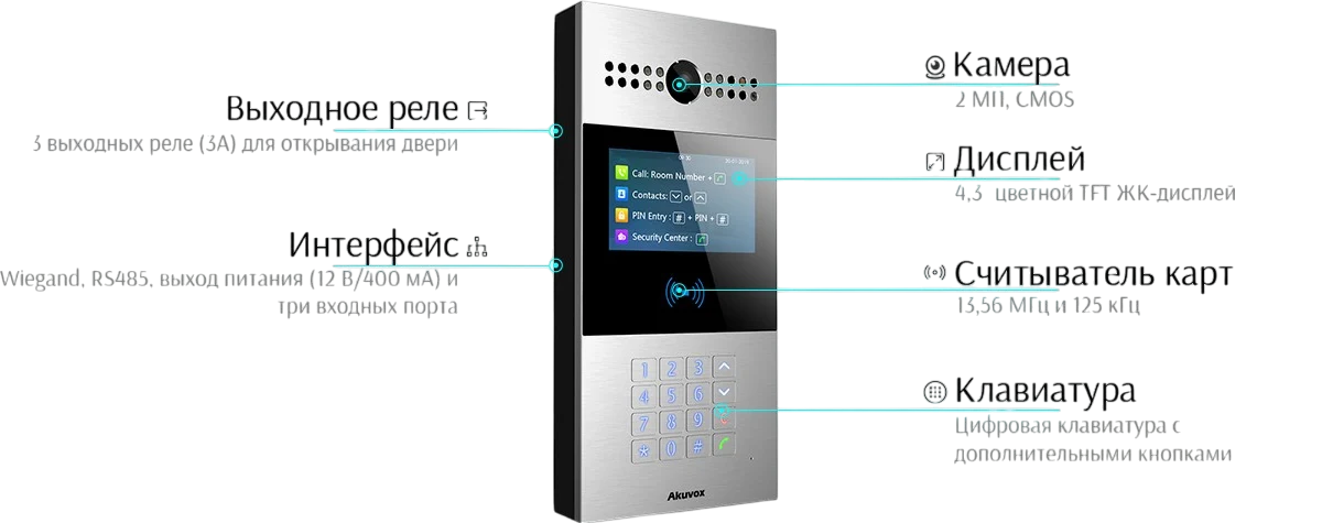 Многоабонентская вызывная панель Akuvox R28A устанавливает новые стандарты в системах контроля доступа, став первой в мире моделью с поддержкой современного видеокодека H.265. Это решение обеспечивает 50% экономию дискового пространства без потери качества изображения. Устройство оснащено ярким 4,3» цветным дисплеем, 2Мп камерой с ИК-подсветкой и универсальным RFID-считывателем.